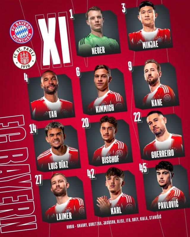 北京時間11月29日22:30,德甲第12輪,拜仁慕尼黑主場迎戰(zhàn)圣保利。拜仁公布首發(fā),勞模凱恩領(lǐng)銜鋒線,迪亞斯先發(fā),奧利塞輪休。與帕梅卡諾缺席最終名單,官方給出的理由是“管理身體負(fù)荷”。 拜仁慕尼黑首發(fā)(4231):諾伊爾/萊默、若納唐·塔、金玟哉、比朔夫/基米希、帕夫洛維奇/倫納特·卡爾、格雷羅、路易斯·迪亞斯/凱恩 替補:烏爾比希、格納布里、格雷茨卡、尼古拉斯·杰克遜、奧利塞、伊藤洋輝、博埃、斯塔尼希奇、基亞拉